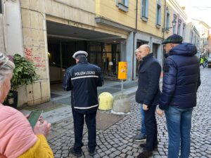 ALESSANDRIA – Sopralluogo dell’assessore al Commercio, Giovanni Berrone, questa mattina in via San Lorenzo. Con lui, alcuni tecnici dell’Ufficio Lavori pubblici del Comune e gli agenti della Polizia municipale.